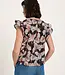 De moderne all-over print is een stijlvol statement, terwijl de ruches op de schouders een zachte, speelse touch aan het ontwerp geven. Het strakke silhouet zorgt ervoor dat de blouse zowel casual als elegant gestyled kan worden: met jeans en sneakers voor een alledaagse look, of met een eenvoudige pantalon en sandalen voor een meer verfijnde uitstraling.