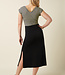 De rok heeft een brede tailleband en een geraffineerde split aan de zijkant.