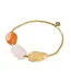 De Desirable Carneool Rozenkwarts Citrien Goudkleurige Armband heeft drie grote, gladde ovale edelstenen: carneool, rozenkwarts en citrien, afgewisseld met goudkleurige glaskralen. Lees meer..