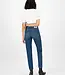 Easy Go is een op mannenmode geïnspireerde pasvorm, voor vrouwen. Met een mid-hoge taille en comfortabele pasvorm in een middenblauwe kleur.