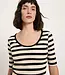 De hoogwaardige jersey stof met wafelstructuur voelt licht aan op de huid, is ademend en ideaal voor dagelijks gebruik. De vrouwelijke halslijn en halflange mouwen geven het shirt een evenwichtig silhouet, waardoor het zowel op zichzelf als onder een trui of blazer gedragen kan worden.