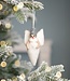 Een vilten engeltje in wit met zilveren accenten, een zachte en sfeervolle hanger voor in de kerstboom. Brengt een vleugje sereniteit en licht in je winterdecoratie.