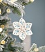 Een vilten hanger in de vorm van een ijsbloem, met subtiele borduursels in blauw en groen. Een elegante toevoeging aan de kerstboom of winterdecoratie in huis.