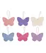 Vilten vlinders in zachte violettinten. Perfect om een paastak, voorjaarsboom of kinderkamer mee te versieren. De frisse kleuren en eenvoudige vormen brengen direct een vrolijk accent in huis. Mooi te combineren met onze andere hangers en vilten bloemen voor een kleurrijk geheel. Verkrijgbaar in 2 formaten.
