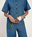 Dit denim shirt, gemaakt van GOTS-gecertificeerd biologisch katoen, is een moderne denim essential met een strakke, tijdloze uitstraling. De gestructureerde denim zorgt ervoor dat het shirt zijn vorm behoudt en voelt luxueus aan – ideaal voor een moeiteloos chique look. Met zijn strakke kraag en relaxte silhouet kan dit denim shirt op verschillende manieren worden gedragen: als statement piece met een bijpassende denim broek, open over een topje of dichtgeknoopt als modern overshirt. De klassieke blauwe kleur maakt het een duurzame aanvulling op je garderobe – van minimalistische looks tot relaxte tailoring.