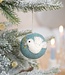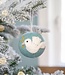 Een vilten kerstbal in ijsblauw met een vredesduif en zilveren accenten. De duif draagt een olijftakje, een symbool van vrede en hoop. Een bijzondere decoratie voor in de kerstboom.