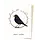Kerstkaart met een illustratie van een merel op een tak met rode bessen.