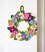 Grote vilten krans met margrietjes in violettinten en groene blaadjes. Voorzien van een lusje om op te hangen aan deur, muur of raam. Een vrolijke blikvanger voor lente en zomer. Lees meer..
