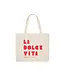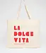 Deze opvallende tas van biologisch katoen brengt de mediterrane nonchalance in je dagelijks leven – met de iconische "La Dolce Vita"-print die een gedurfde, moderne uitstraling geeft. Lees meer..