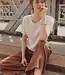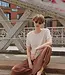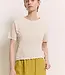 Luchtig. Vrouwelijk. Elegant, top EMMAA met opengewerkte details en die de lichtheid van een T-shirt met de verfijning van fijn breiwerk combineert. Gemaakt van biologisch katoen Lees meer..