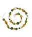 Viltslinger met viltballetjes en pompoms in groen, geel en wit. De slinger is voorzien van lusjes aan beide uiteinden en geschikt om op te hangen aan muur, schouw of kast. Brengt kleur en vrolijkheid in elk seizoen.