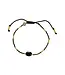 Maak kennis met de Wanting Black Onyx Armband in Goudkleur. Deze armband is gemaakt van glaskralen en goudkleurige glaskralen met een ovale, gladde zwarte onyx edelsteen. Hij sluit met een schuifknoop van katoendraad met messing kralen en heeft een verstelbare binnenmaat van 16 tot 22 cm. Zwarte onyx straalt pure focus uit.