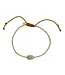 Maak kennis met de goudkleurige Labradoriet Armband. Deze armband is gemaakt van glaskralen en kleurige glaskralen met een ovale, gladde labradoriet edelsteen. Hij sluit met een schuifknoop van katoendraad met messing kralen en heeft een verstelbare binnenmaat van 16 tot 22 cm. Labradoriet helpt je je intuïtie te volgen. De glaskralen zijn of goud of zilver, kies je favorite kleur!