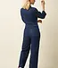 Deze denim jumpsuit heeft een retrodesign met een praktische rits aan de voorkant, wijde pijpen en driekwartmouwen.