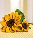 Vilten zonnebloemen met een grote bloem en een kleinere knop aan de stengel. De warme kleuren en groene bladeren maken het een zomerse blikvanger. Mooi in een vaas of als onderdeel van een vilten boeket. Lees meer..